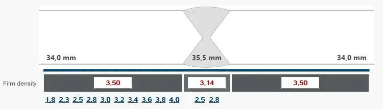 The exposure time determines the film density. The film density during radiographic testing is the factor used to assess the quality of the base material and the weld seam. Differences in film density can indicate material defects, changes in material thickness or irregularities in the weld seam.